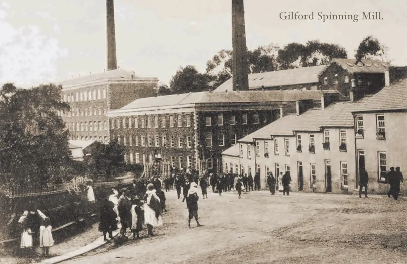 In the early 1800s, Gilford remained a rural village tied to the fortunes of linen and its curiously retiring landlord. While the Hawkins-Magills cultivated aristocratic status—Theodosia Hawkins-Magill marrying the Earl of Clanwilliam—Sir William Johnston, 2nd Baronet of Gilford, lived quietly, serving briefly as High Sheriff in 1788 before dying unmarried in London in 1841. Under his stewardship, the village evolved into a hub for flax processing and water-powered mills, attracting workers from the countryside even as emigration to the Americas intensified.