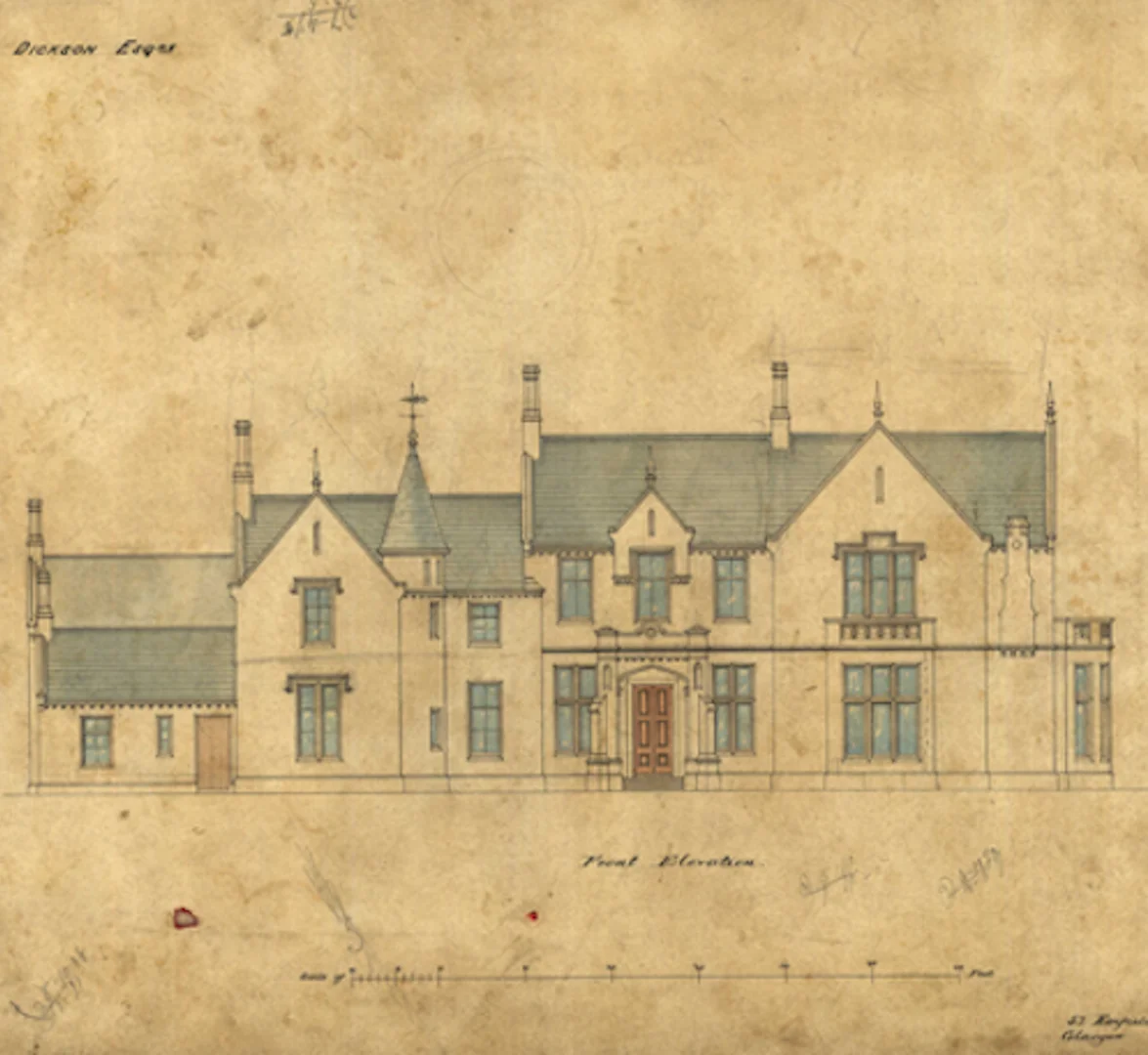 Gilford Castle was commissioned in the 1850s by Benjamin Dickson, a prosperous linen merchant whose family helped shape Gilford village’s industrial fortunes. Seeking a residence that reflected his success and standing, he engaged William Spence of Glasgow, an architect known for his romantic interpretations of the Scottish Baronial style.