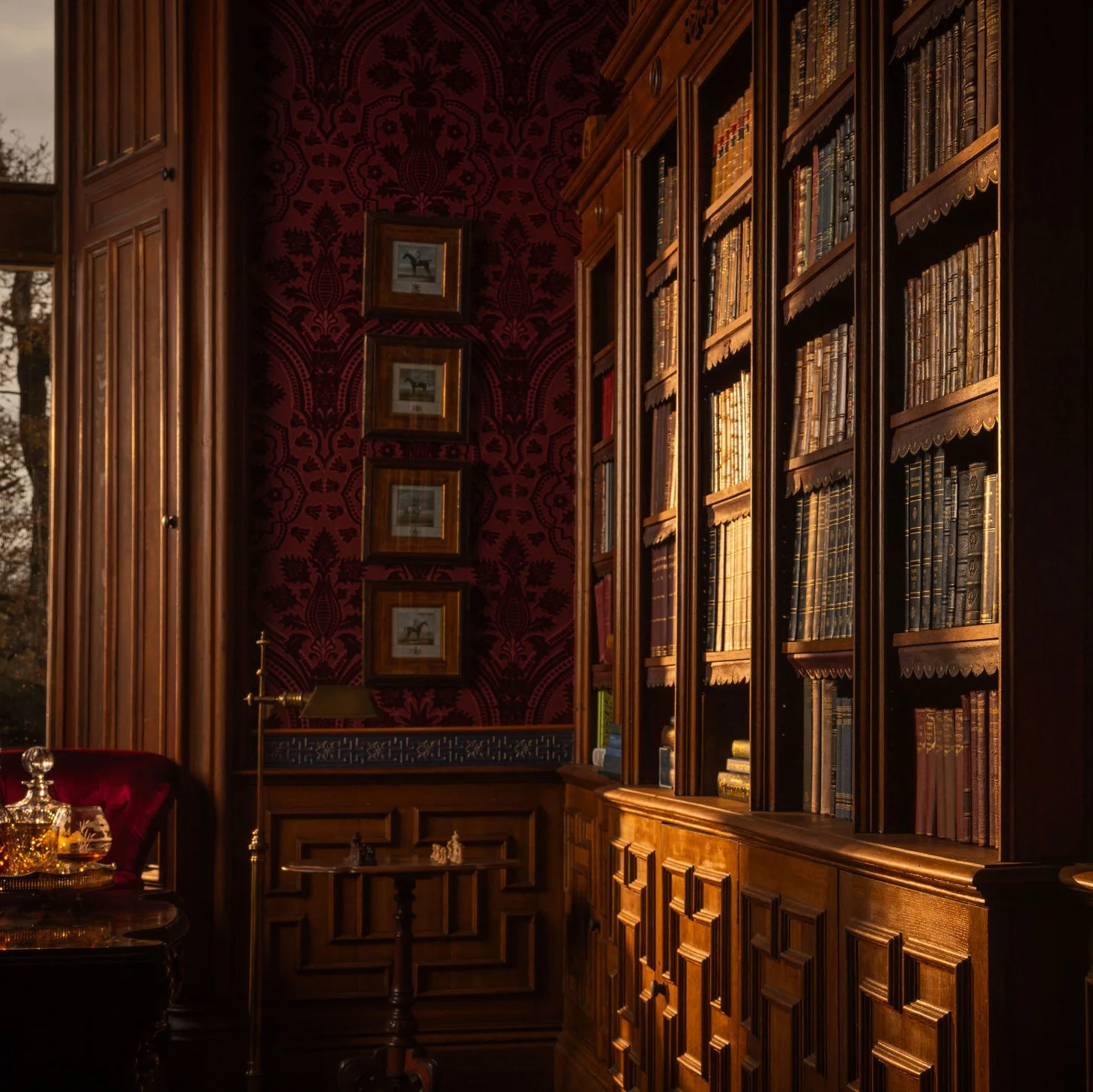 Gilford Castle’s cosy library overlooking the garden has been returned to its former warmth and depth. The Moffetts restored the original oak cabinetry and panelling, reinstated patterned wall coverings inspired by Victorian design, and introduced furnishings that bring texture and intimacy. Imagine sitting here on a rainy afternoon, the fire glowing, flipping through the pages of a good book.